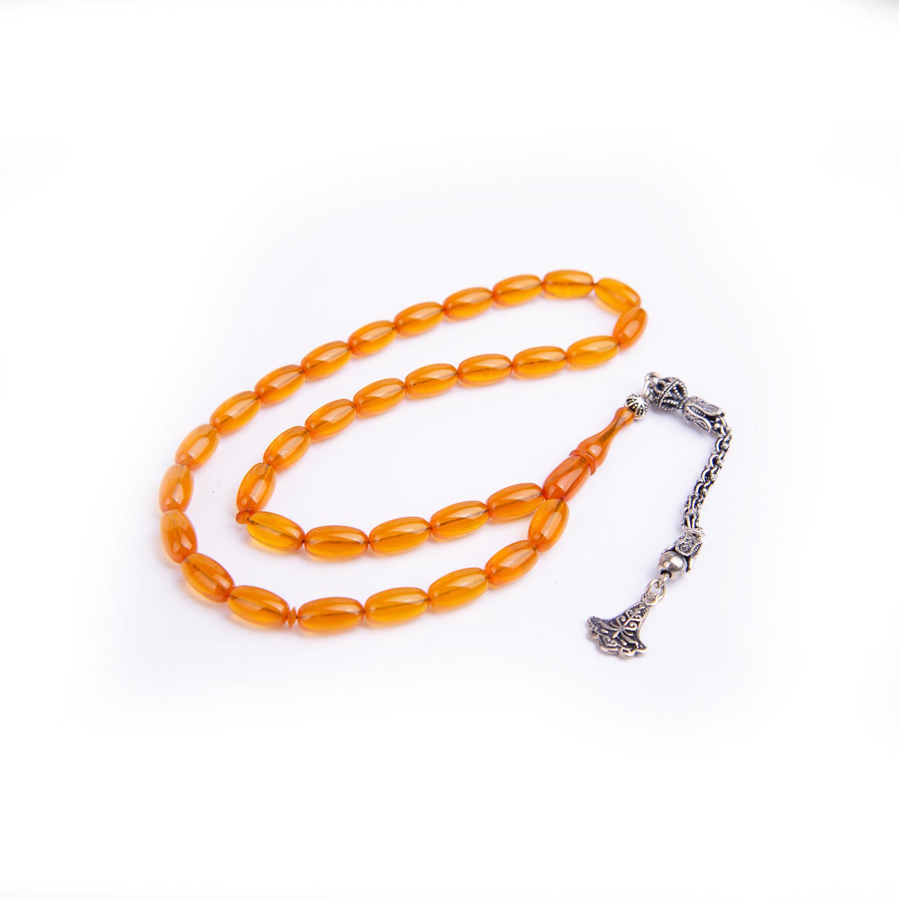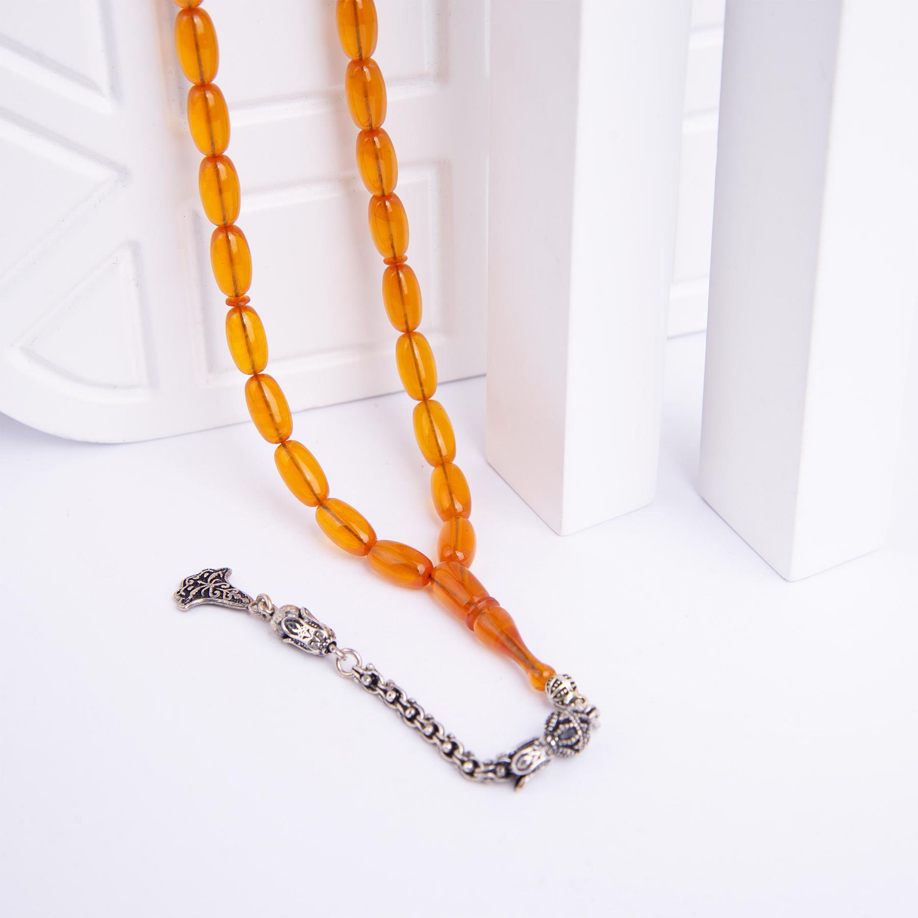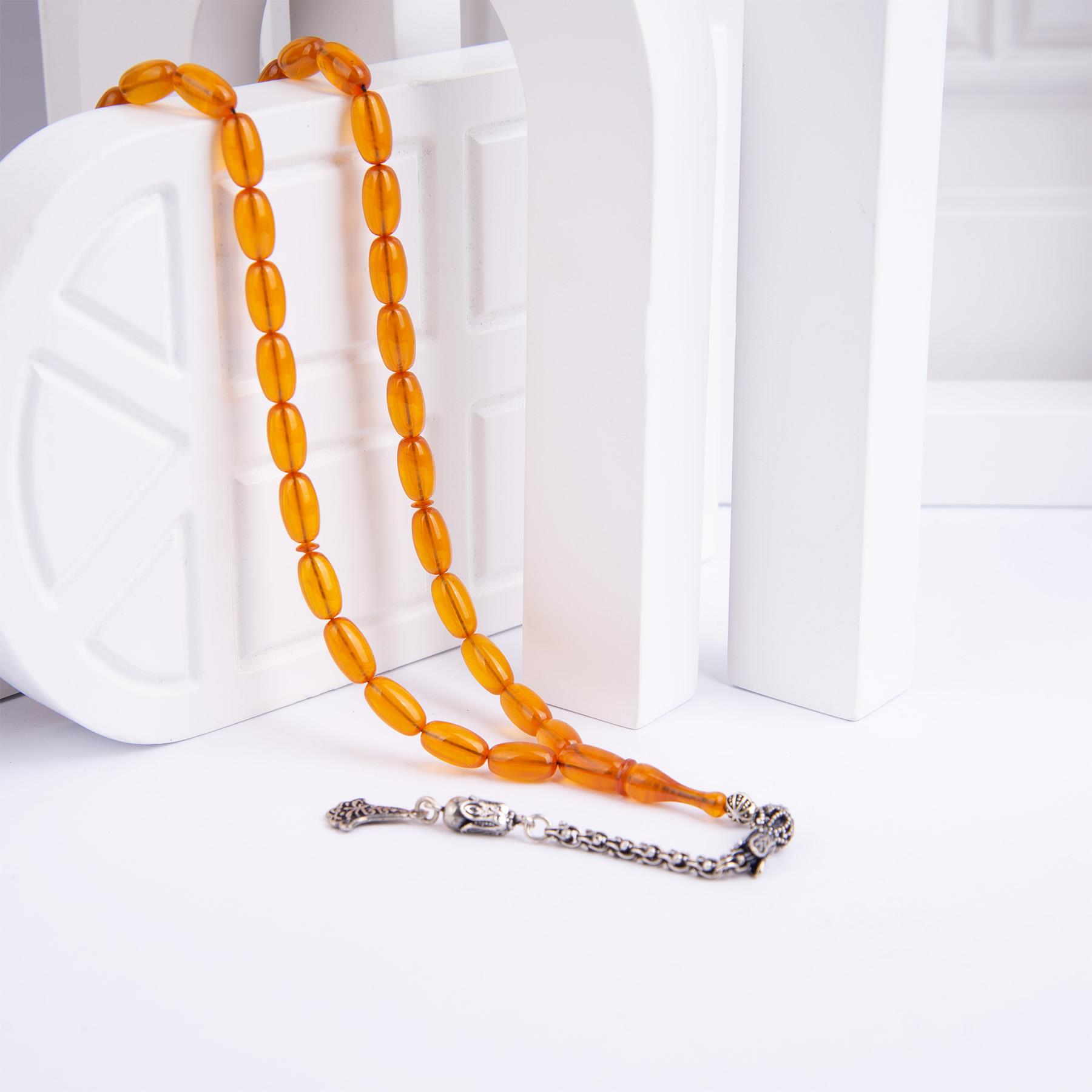 Gümüş Püsküllü Kapsül Kesim Sıkma Kehribar Tesbih -Z3108 Ölçü: